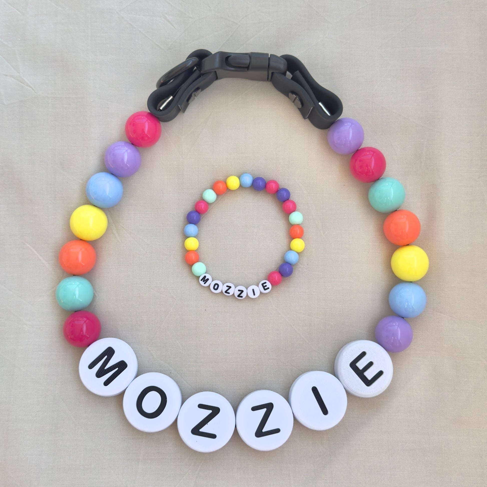 Whether you’re looking for a meaningful gift or a creative afternoon activity, the kit includes everything you need to assemble a personalized matching collar and bracelet set! Plus, a few cute puppy stickers.
